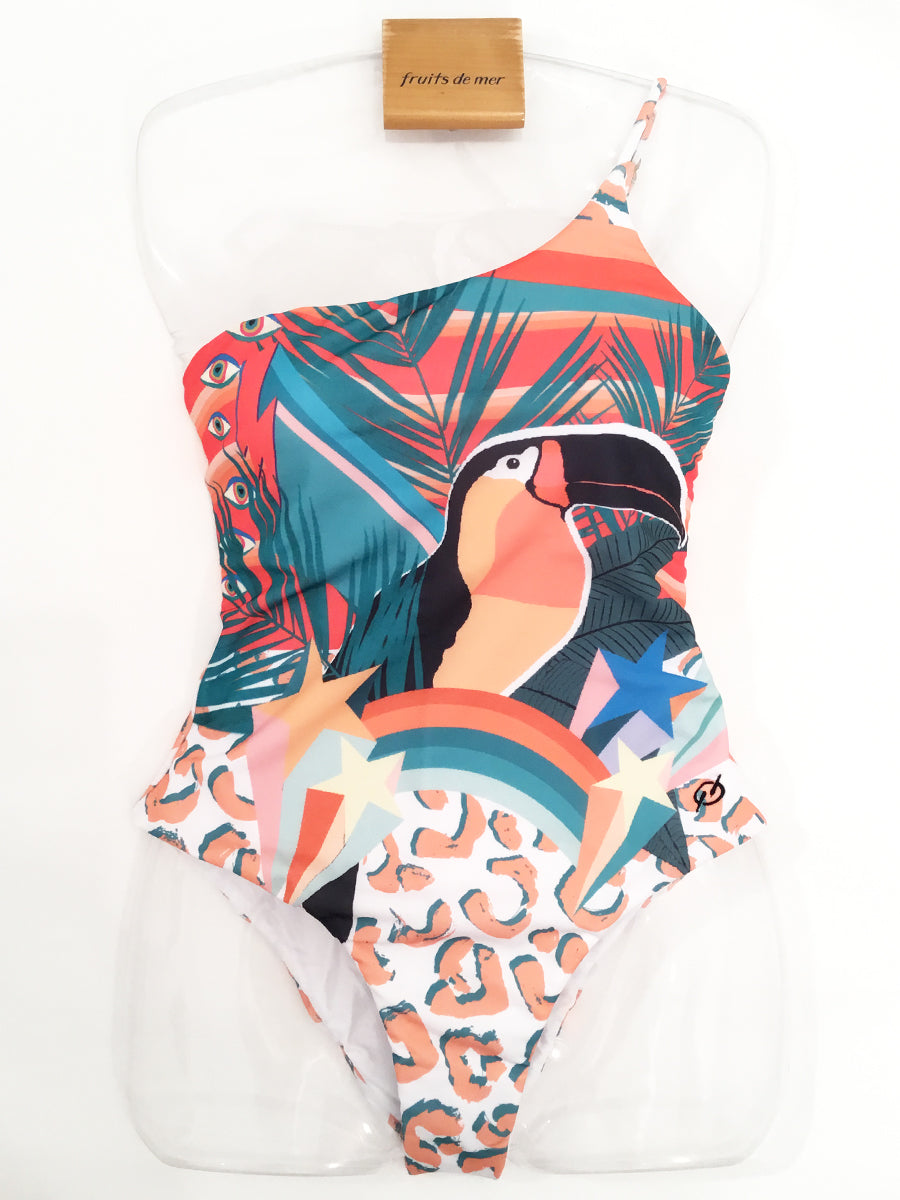 ブラジル国鳥のトゥッカーノが大きくプリントされたインパクトある一着。