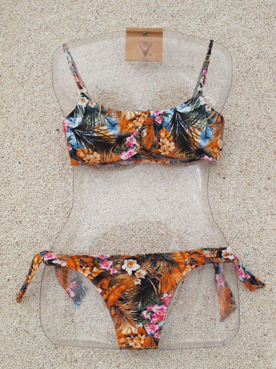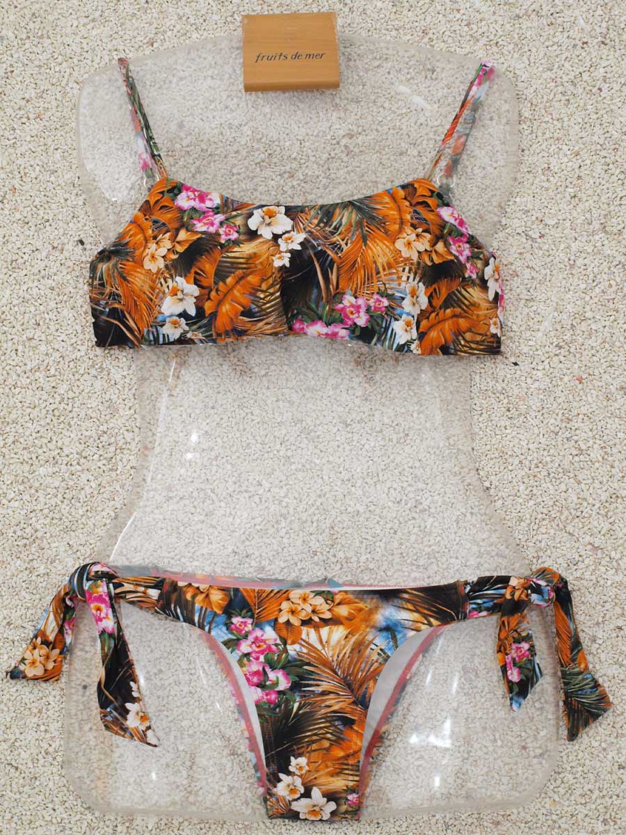 ボトムは脚長・ヒップアップ効果のあるブラジルカットビキニでスタイルアップ効果も。