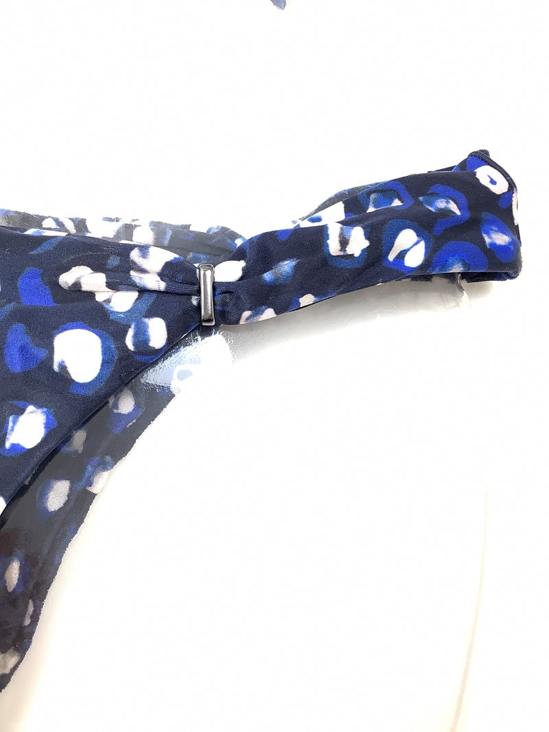 ブラのパーツをスライドさせて布の面積を調節できます。パーツを下げてブラの三角部分を小さくし日焼け跡までスマートでセクシーに。パーツを上げて布面積を大きくし贅沢なドレープを楽しむ大人なホルタービキニに。ボトムスのパーツを内側にスライドさせてコンパクトなカッティングを楽しむことも、外側にスライドさせて安心な布面積で着用することもできます。注意点としましては、生地にダメージをあたえないように、ゆっくり慎重にパーツをスライドさせてください。